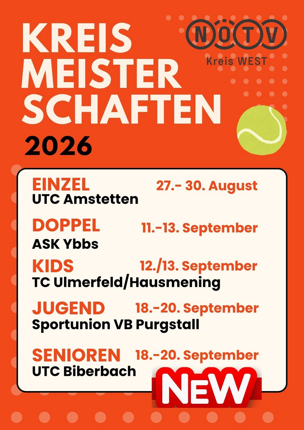 - 27.-30. August Einzel-Kreismeisterschaften UTC Amstetten