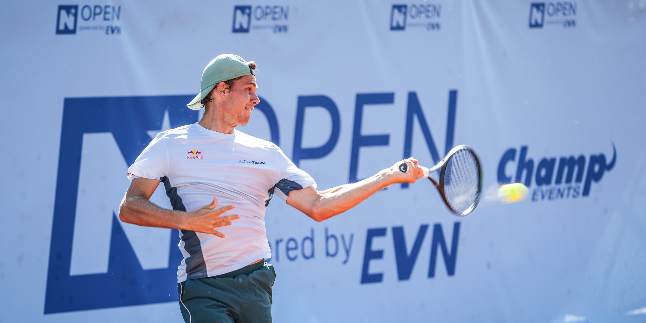Pünktlich um 14:00 Uhr enterten dann die Nummer eins von Tulln, der in Niederösterreich ansässige Brite und Vorjahressieger Jan Choinski (ATP 150), und Österreichs vom Publikum besonders herzlich empfangener Shootingstar Joel Schwärzler (ATP 262) den voll besetzten Centre Court. Und die Begegnung des 29-jährigen Titelverteidigers mit seinem exakt zehn Jahre jüngeren Kontrahenten hielt, was sich die Fans von ihr versprochen hatten. Beide bauten am Tullner Sand zurecht auf ihre starken Aufschläge, aber obwohl Choinski mehr erste Kracher im Feld unterbringen konnte und Schwärzler vier Breakbälle abzuwehren hatte, konnte die ehemalige Nummer eins der Juniorenweltrangliste ihr Level Game für Game steigern und letztlich das Tiebreak auch dank extrem druckvoller Topspin-Grundschläge mit 7:3 für sich entscheiden.