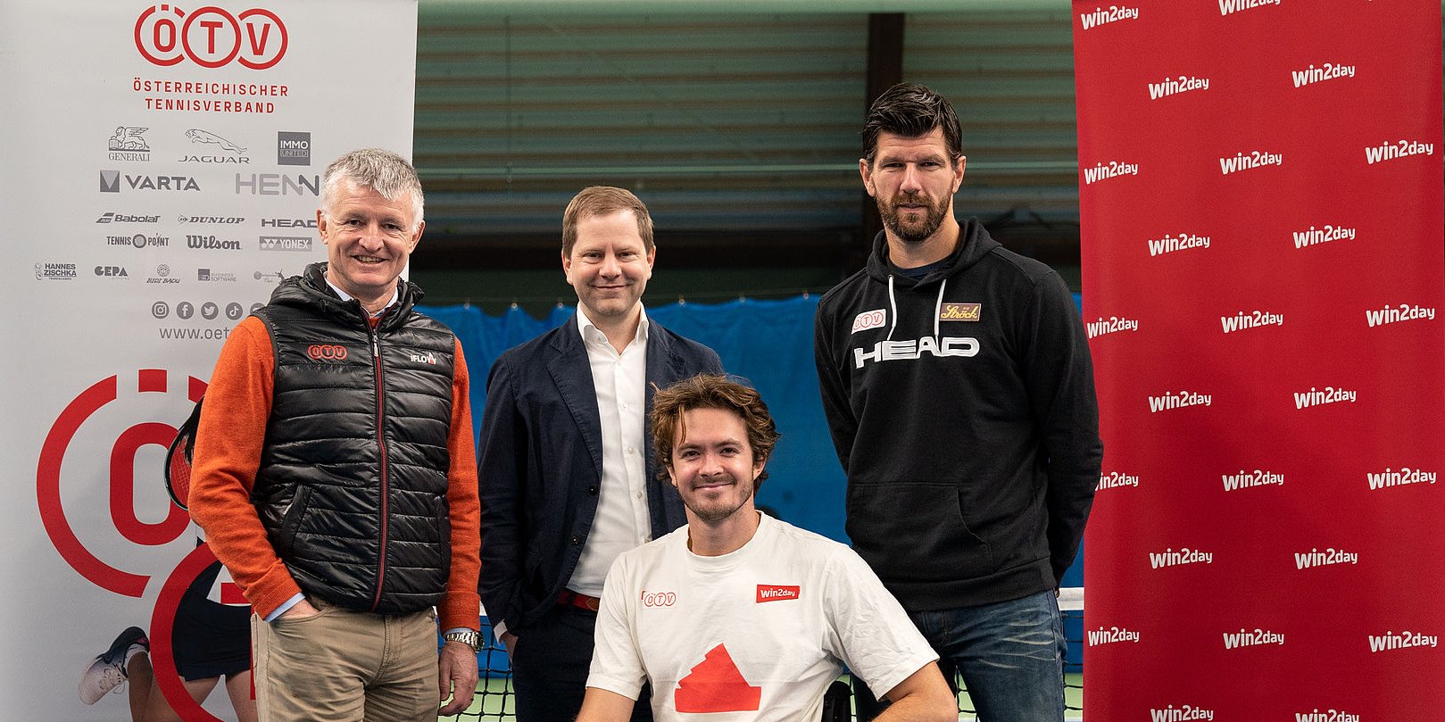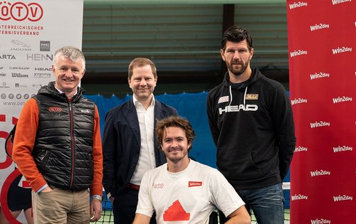 Der ÖTV (links mit Geschäftsführer Wirtschaft und „Play Fair Code“-Vorstandsmitglied Thomas Schweda, rechts Sportdirektor und Davis-Cup-Kapitän Jürgen Melzer) setzt sich gemeinsam mit Georg Wawer (2. von links), Managing Director des ÖTV-Hauptsponsors win2day und Ordentliches Mitglied beim „Play Fair Code“, stark gegen Spielmanipulation und Wettbetrug ein.